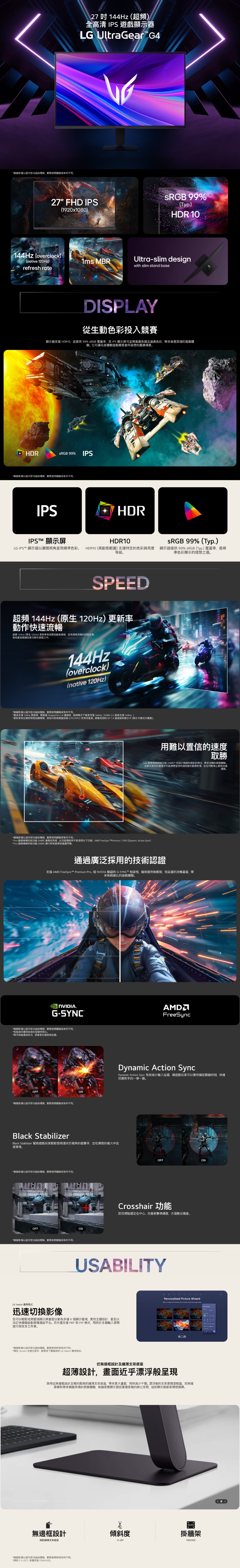 - 120Hz (超頻 144Hz) 更新率 / 1ms 動態模糊抑制 (MBR)