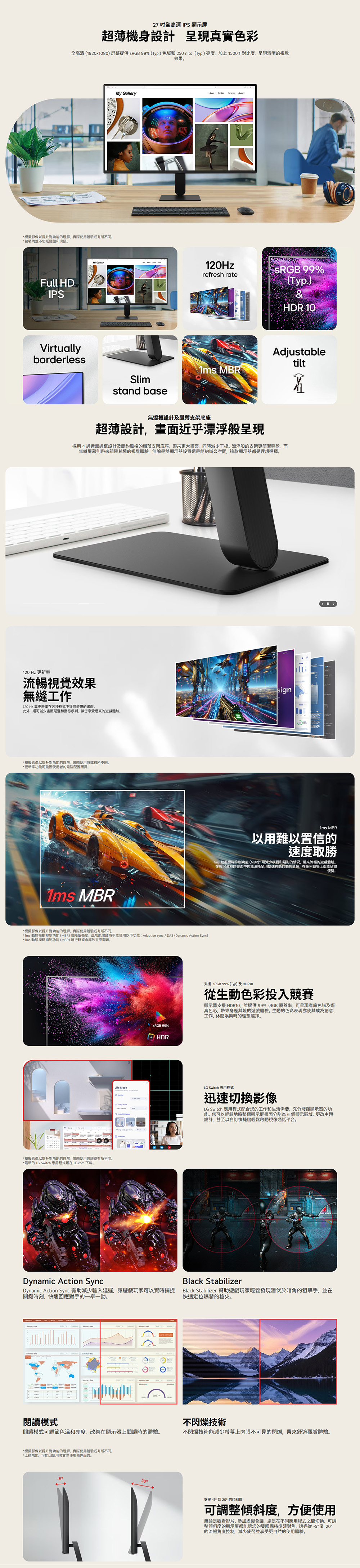 - 120 Hz 更新率、1ms 動態模糊抑制 (MBR)