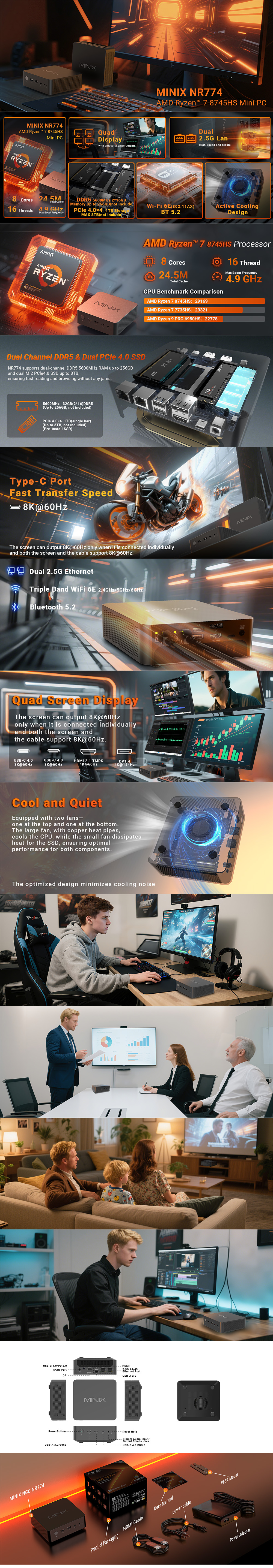 - 類型:AMD Ryzen™ 7 8745HS 迷你電腦,搭載 Windows 11 Pro(64 位元)