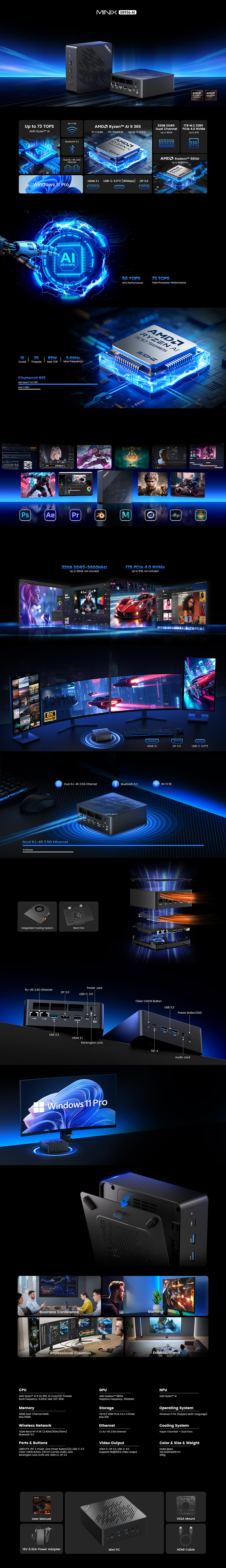 - CPU:AMD Ryzen™ AI 9 365