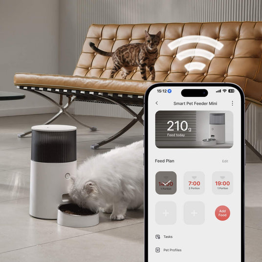 使用 Smart Pet Feeder [Mini] 確保您的寵物始終吃得飽。這款先進的自動貓餵食器具有 WiFi APP 控制功能,可精確安排膳食。每天最多可規劃 5 餐,份量可調節,以滿足您寵物的需求。大塊粗磨食物設計支援直徑達 16 毫米的食物,確保順暢、無堵塞的餵食。這款自動貓糧分配器由不含 BPA 的材料製成,並配有不鏽鋼托盤,安全且易於清潔。三重新鮮度鎖系統保持食物新鮮,而雙電源確保不間斷運行。這款自動餵食器非常適合忙碌的寵物主人,使寵物護理變得輕鬆可靠。