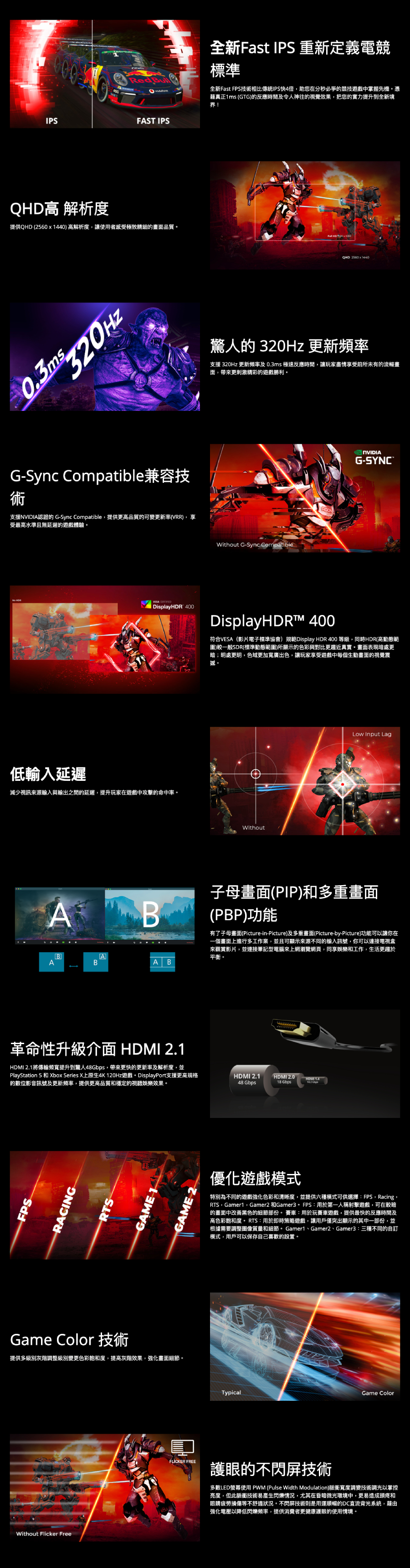 2560 × 1440 @ 320Hz – DisplayPort1.4, HDMI2.1 |
