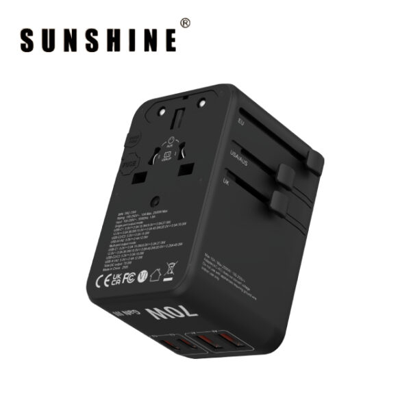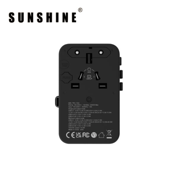- 內置 JP/US、AU、EU、UK 插頭 及 寛電壓AC國際插座,適用於全球大部分國家。