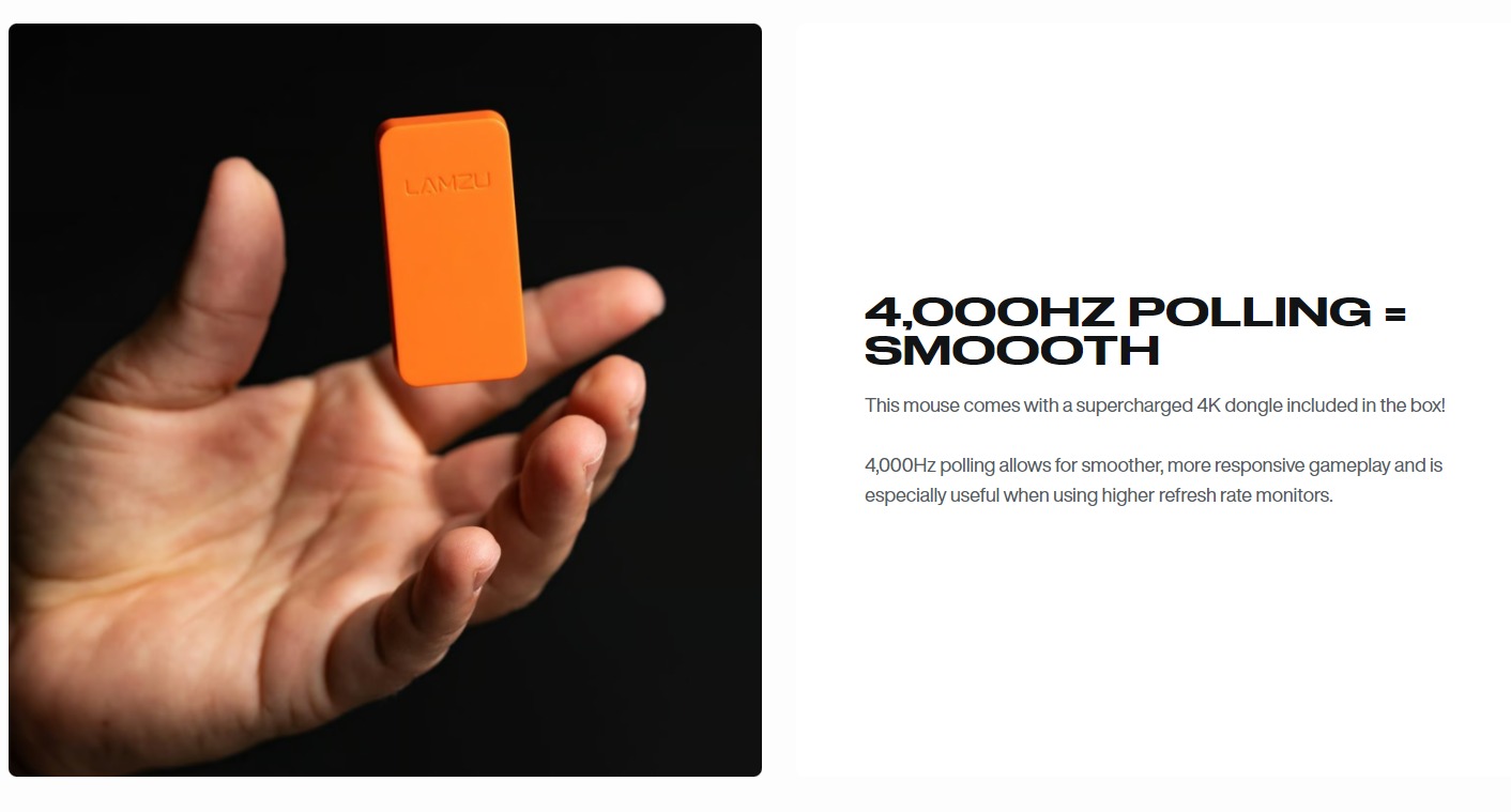 - 4K Polling Rate 可實現流暢的遊戲體驗。