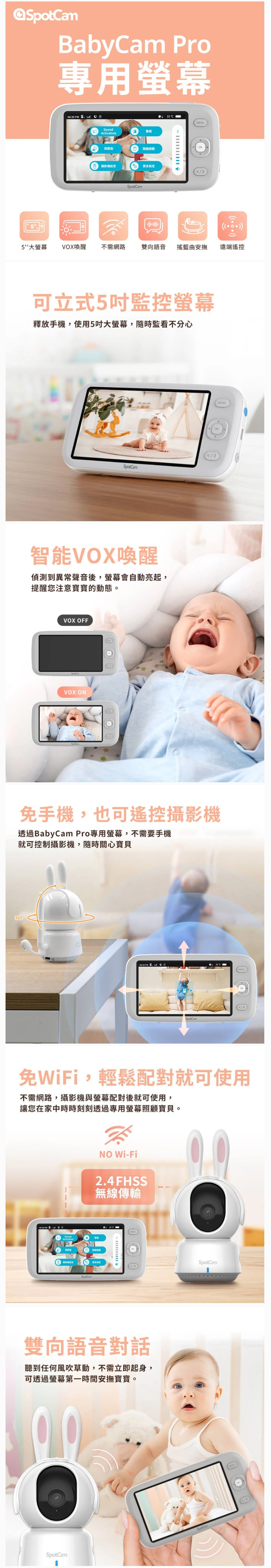 - VOX 智能喚醒,偵測到哭聲自動亮螢幕提醒