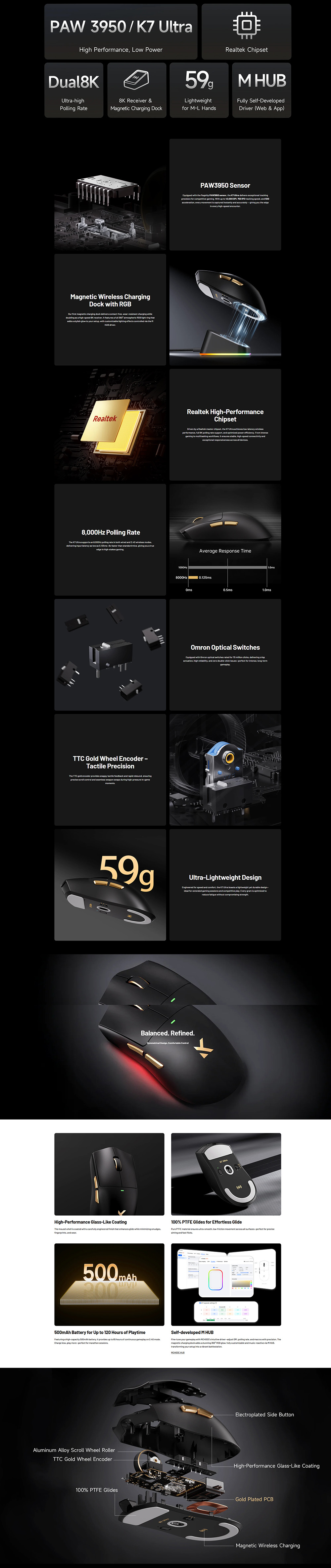 1× K7 Ultra Mouse, 1× Magnetic Charging Dock, 1× 1K Receiver, 1× Charging/Data Cable, 1× User Manual, 1× Anti-slip Sticker, 1× Mouse Storage Bag |