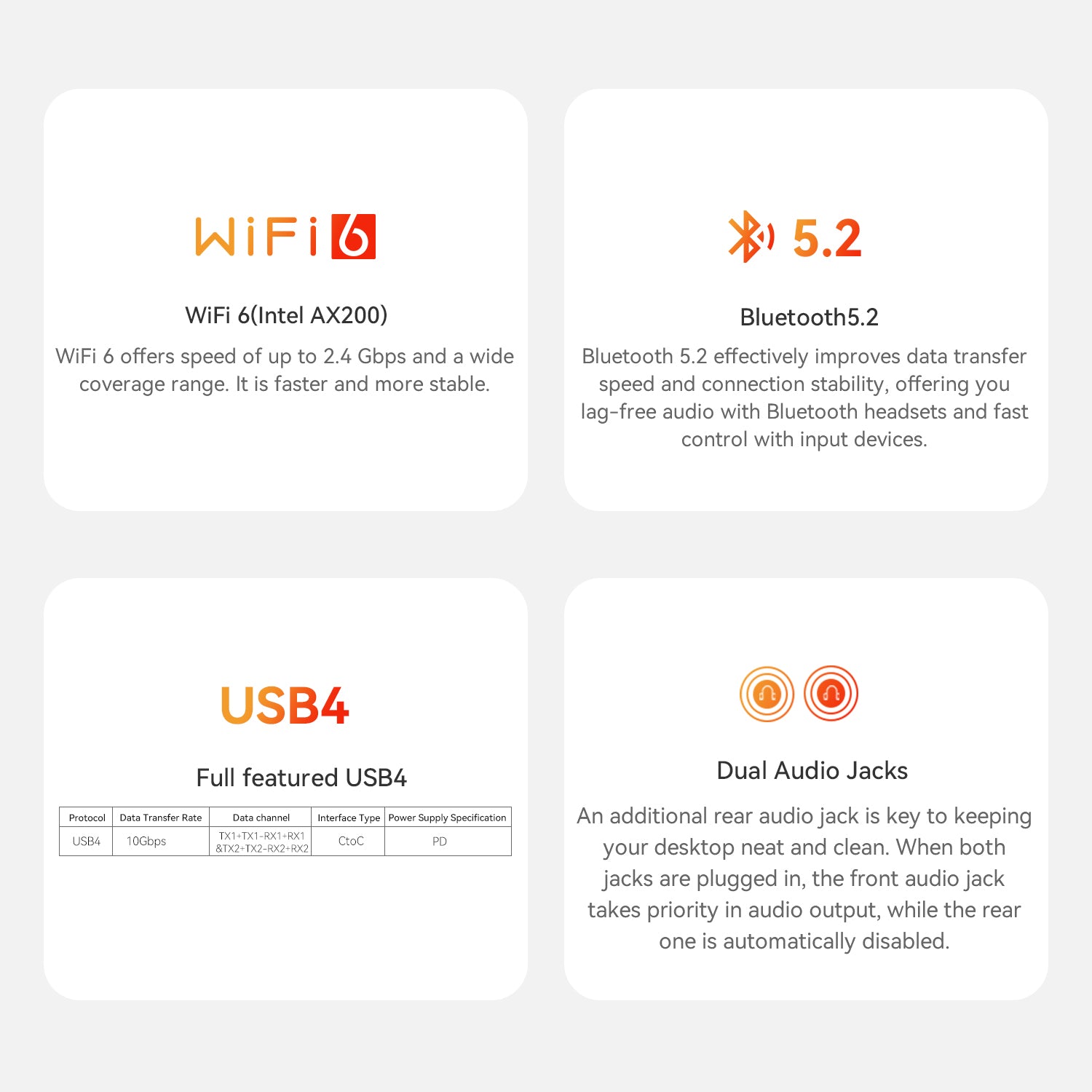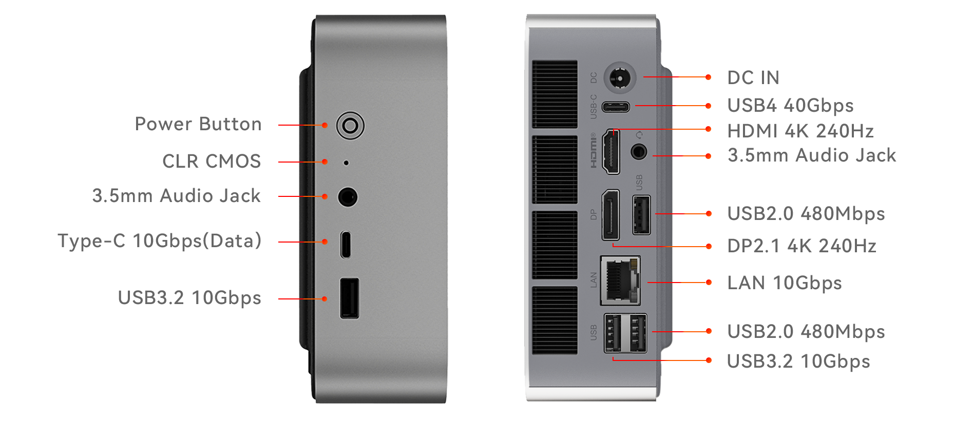 DP1.4(4K 240Hz)*1+HDMI(4K 240Hz)*1+ USB4 (40Gbps/TBT3/PD/DP1.4)*1