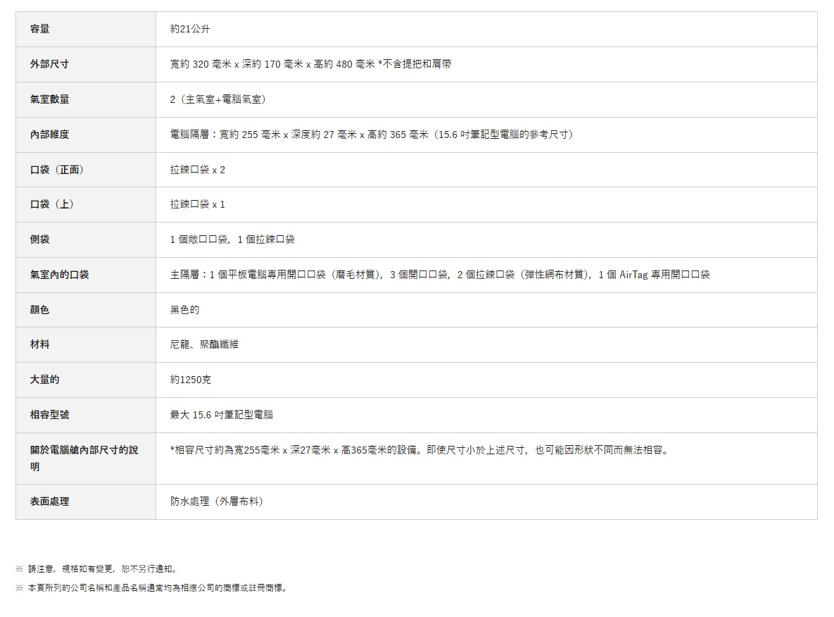 - ▸ 約 21L 容量,滿足日常與商務需求