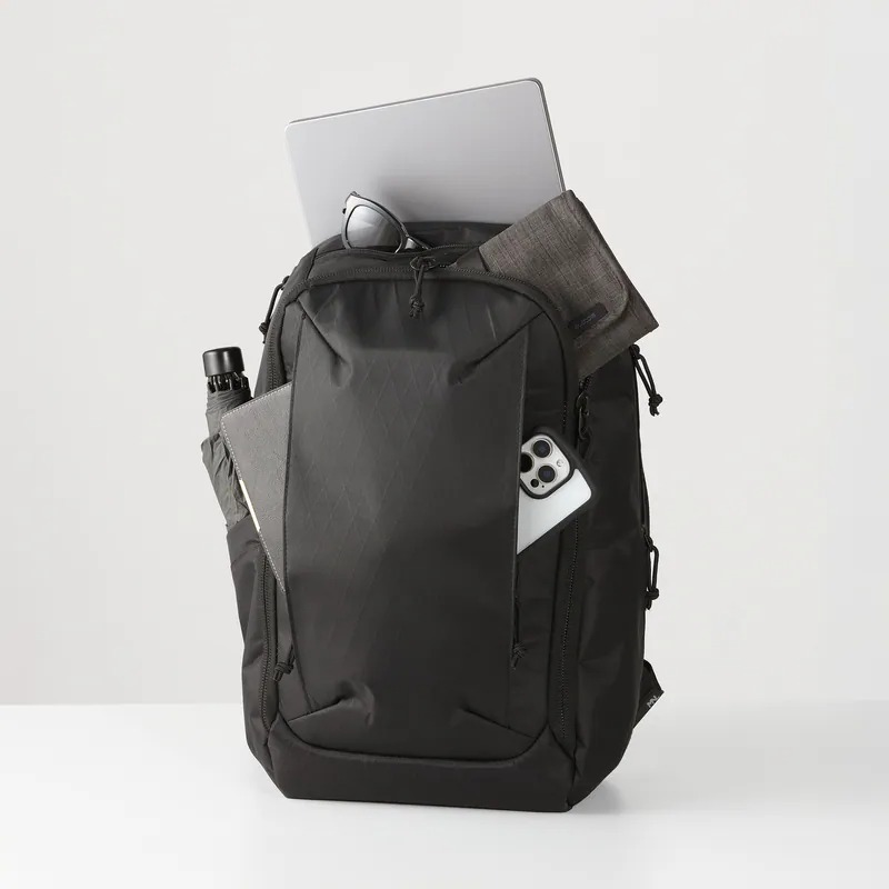 ELECOM City Pack X-Pac 背包 (黑色),採用高強度且防水的 X-Pac® VX21 材質,兼具耐用性與輕量化。容量約 21 公升,支援 15.6 吋筆電收納,並具備 180° 全開設計,方便如同行李箱般整理。多功能口袋配置,能靈活收納日常用品與商務配件,並設有 AirTag 專用口袋,提供額外安全保障。