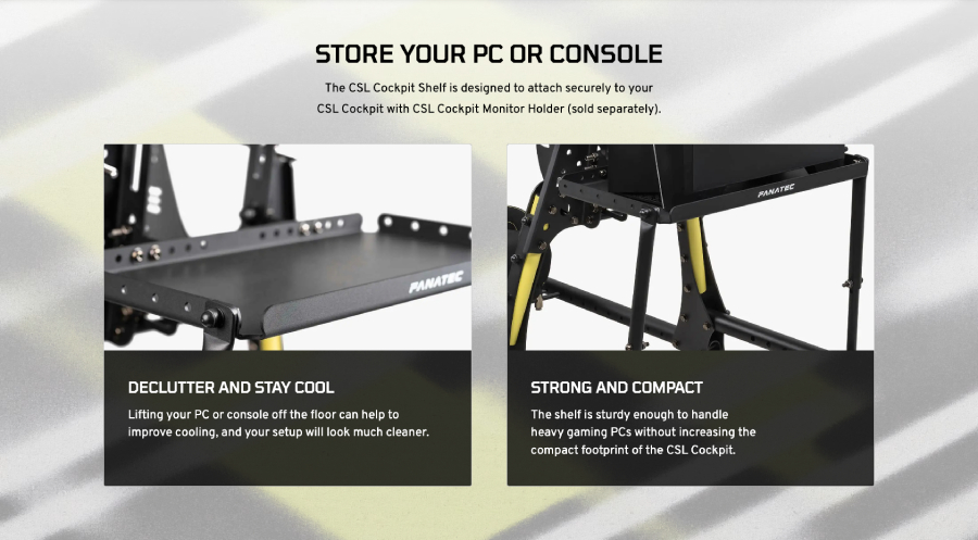 - 具備安裝孔,可固定配件,例如 CSL Cockpit 鍵盤支架(需另購)