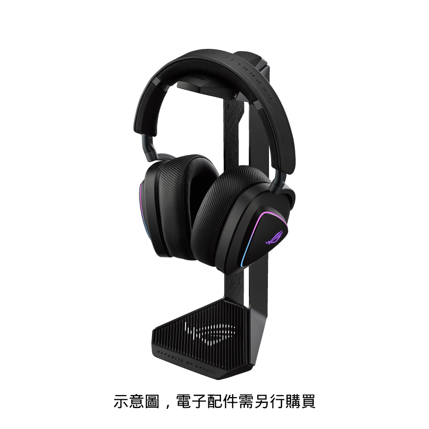 - 專為 ROG 耳機而生:堅固的支架,是您在不使用耳機時,完美展示 ROG 電競信仰的最佳歸宿。
