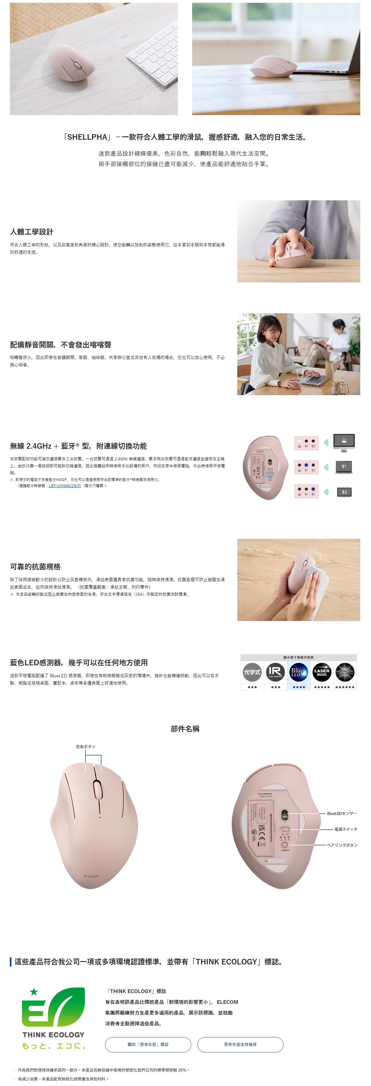 符合人體工學的 2.4GHz + Bluetooth® 無線滑鼠「SHELLPHA」