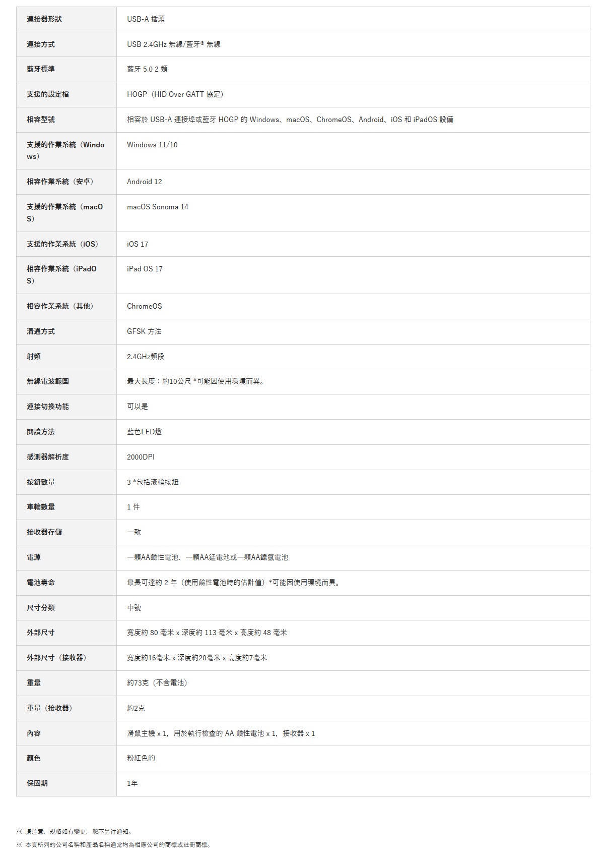 - 支援 USB 2.4GHz 無線與 Bluetooth® 雙模式連線