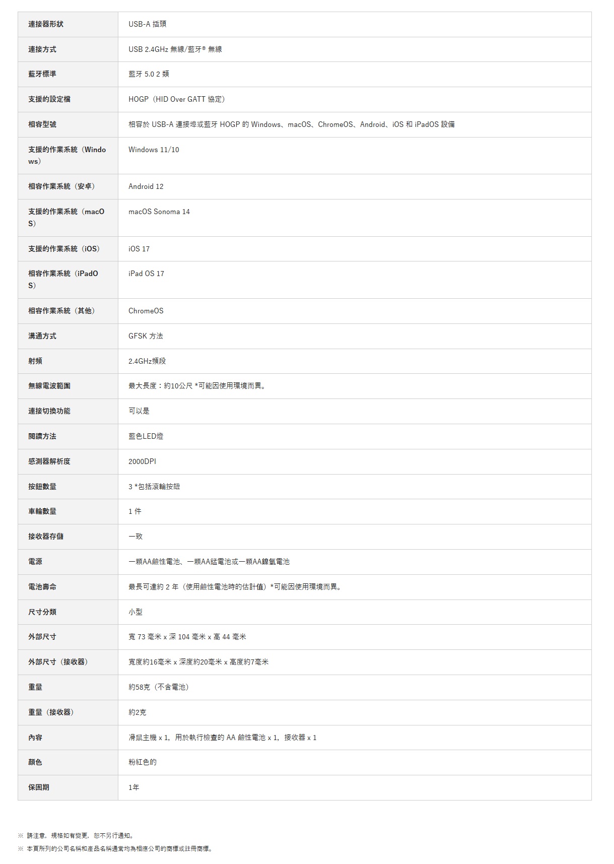 - 支援 USB 2.4GHz 無線與 Bluetooth® 雙模式連線