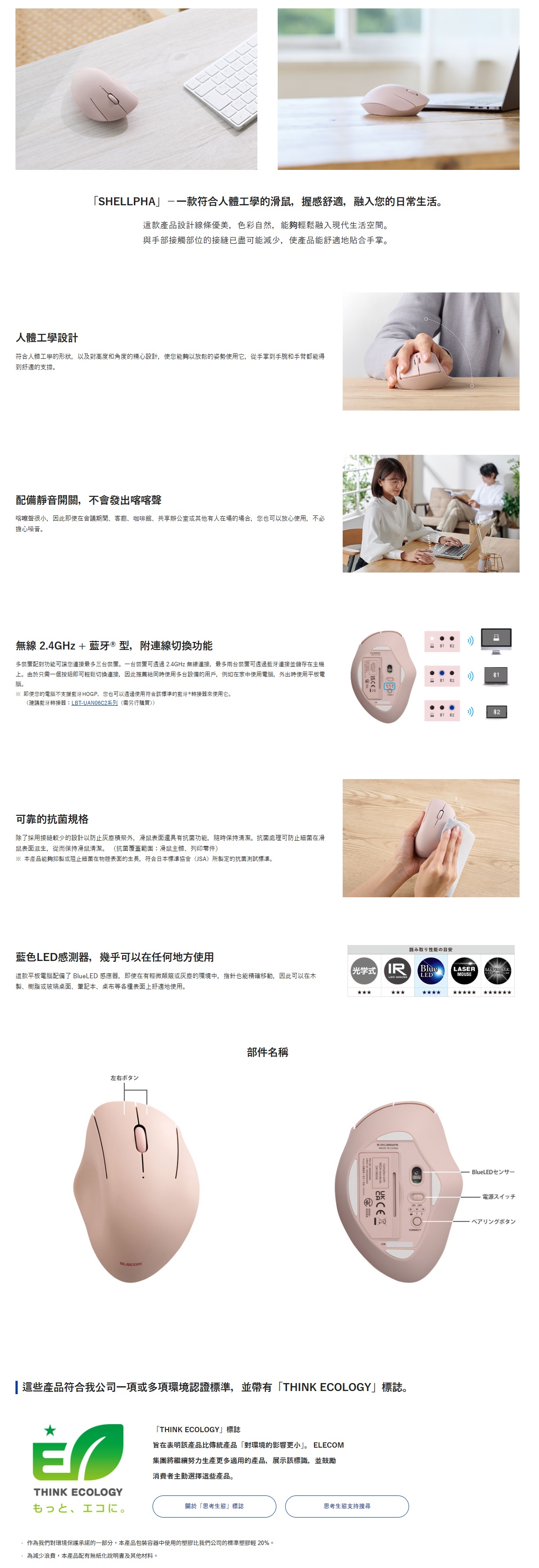 符合人體工學的 2.4GHz + Bluetooth® 無線滑鼠「SHELLPHA」