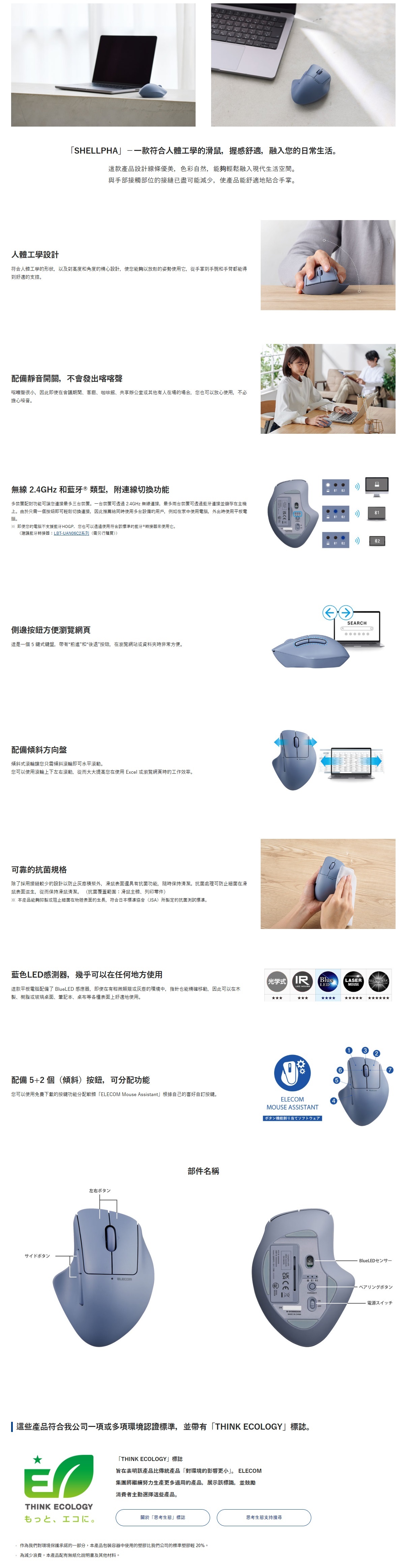 • 可下載「ELECOM Mouse Assistant」軟體,自訂按鍵功能