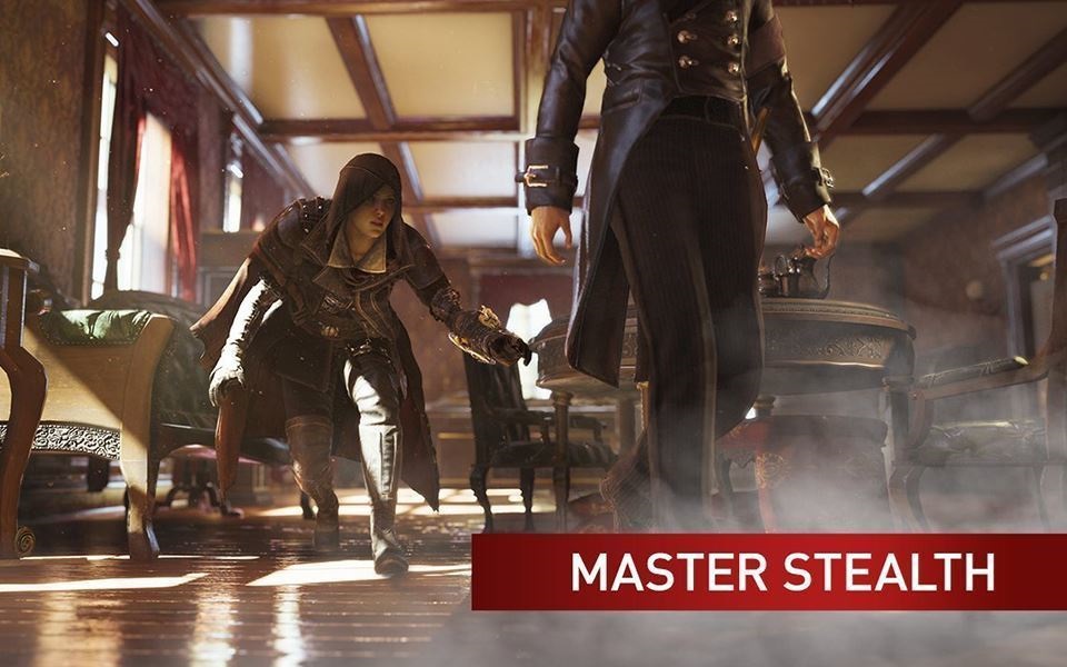 身為衝動叛逆的雅各.弗萊,握緊拳頭準備好以閃電般的殺敵手法以及反擊技來面對殘暴的敵人。運用強化的潛行技巧躲避敵人的追蹤,以新武器全面出擊,這些武器將包括庫克力彎刀、指虎、以及拐杖劍。運用新科技所打造出來的繩槍發射器快速攀爬建築物,出奇不備的突襲你的敵人。