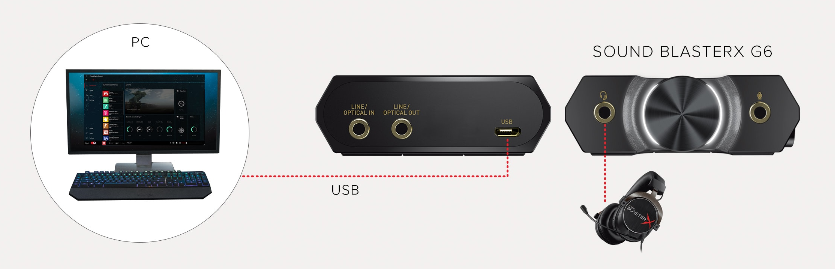 Sound BlasterX G6具有多種連接選項 - 光纖,USB,甚至線性輸入 - 這意味著無論您使用的是PC,PS4,Xbox還是Nintendo Switch,您的遊戲音頻都將會立即得到提升。