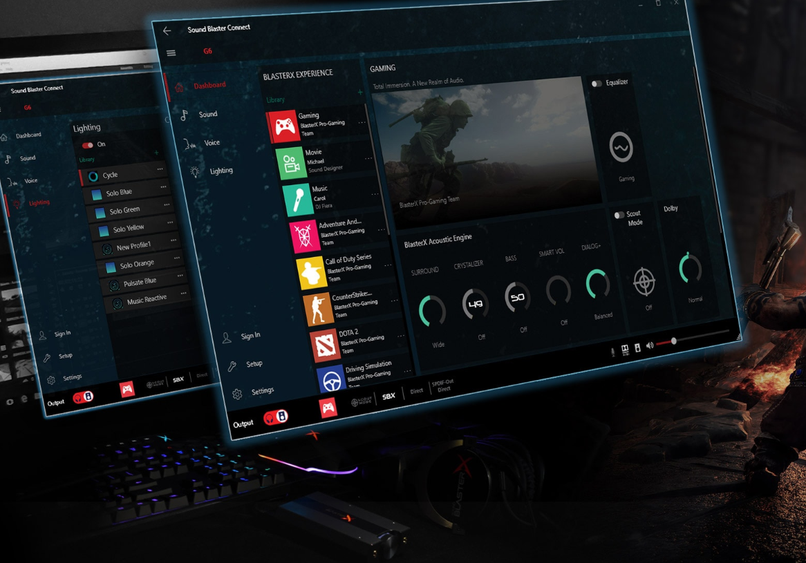 Sound BlasterX G6支持杜比數字解碼和7.1虛擬環繞聲,它可以非常準確地再現對手的腳步聲,槍聲和其他音頻線索。