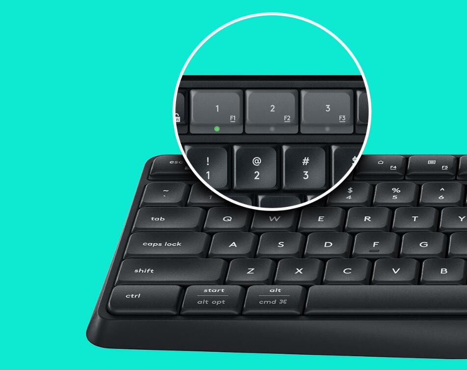K375s 多工鍵盤具備防潑濺* 功能且經久耐用。24 個月的電池壽命** 以及自動休眠和電源開啟/關閉開關,提供長期使用的便利。