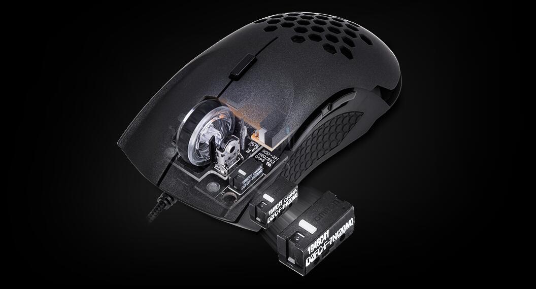 採用高品質 Omron® 滑鼠微動開關生產製造,微動開關耐用 2000 萬次以上按壓操作,不管怎麼按都能精確操作,並且給予遊戲使用上中/低點擊回饋軸承與高靈敏度點擊節奏感,提供更加精準的點擊控制。