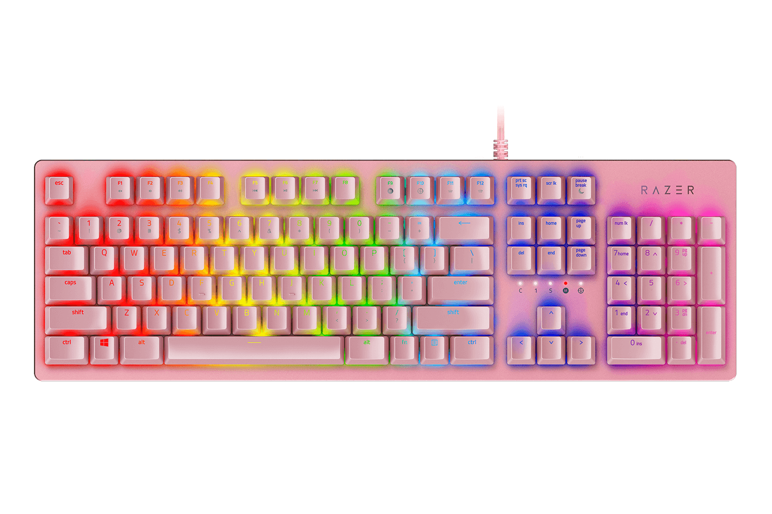 利用 Razer Huntsman 以真正的電競級效能發揮戰鬥實力,或使用 Razer Huntsman Elite 和其功能套件:磁性護腕墊、多功能數位調整鈕和媒體鍵,在 Razer Chroma™ 加持的底光閃耀下享受全方位功能。