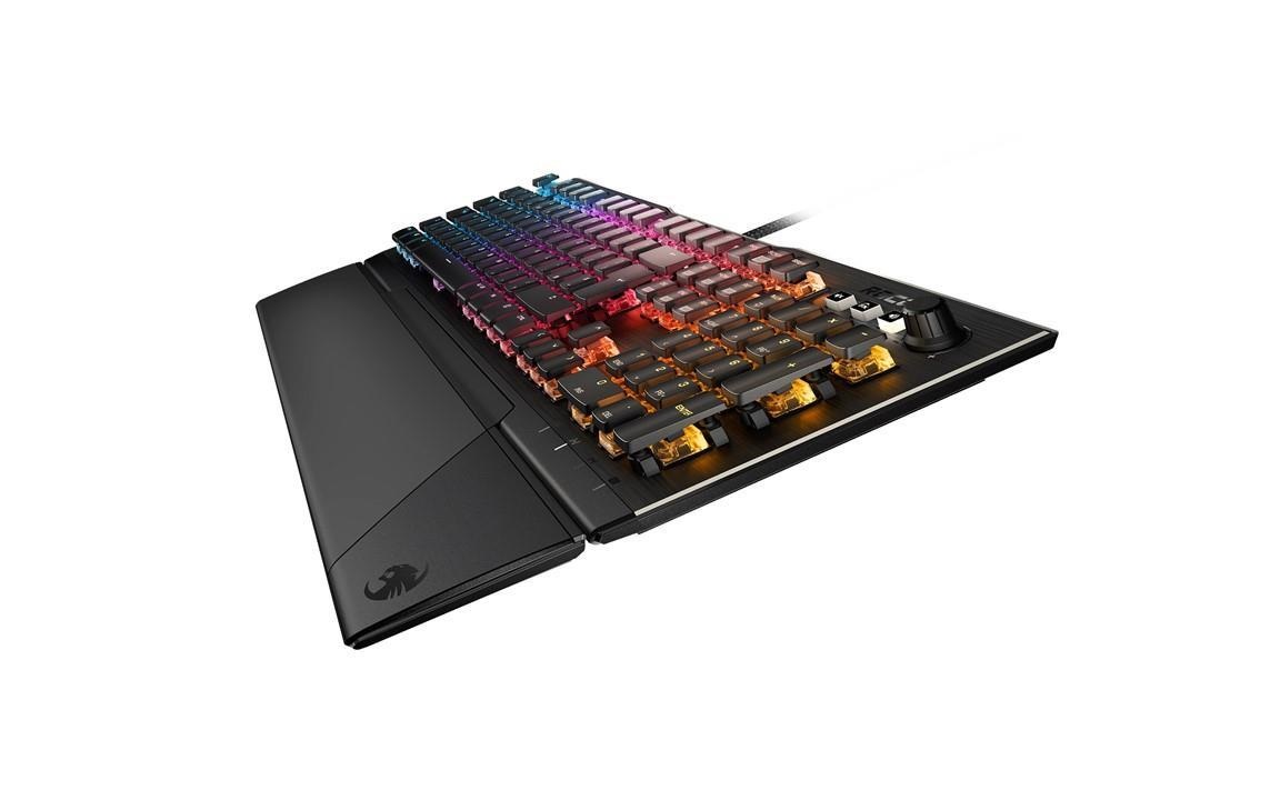 ROCCAT Vulcan機械遊戲鍵盤是融合了技術創新、堅固耐用和多彩照明的代表之作。它是首款採用自主研發的Titan Switches的ROCCAT鍵盤。這些全新設計的鍵軸旨在為遊戲玩家打造一款既快速又精確,同時仍不失觸感的擊鍵。Vulcan的鋼化金屬板使其更加堅固耐用,同時可在撞擊和掉落時保護其免受損壞。此外,按鍵均進行了防塵優化設計。持久耐用的LED燈和透明的鍵軸外殼則讓功能強大的AIMO照明引擎實現了照明均勻。實時發光系統可針對每個按鍵進行自定義,以呈現1680萬色鮮豔色彩或標誌性的ROCCAT藍色背光。