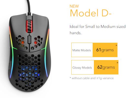 - Weight    Model D-: 61grams (Matte) and 62 grams (Glossy)*