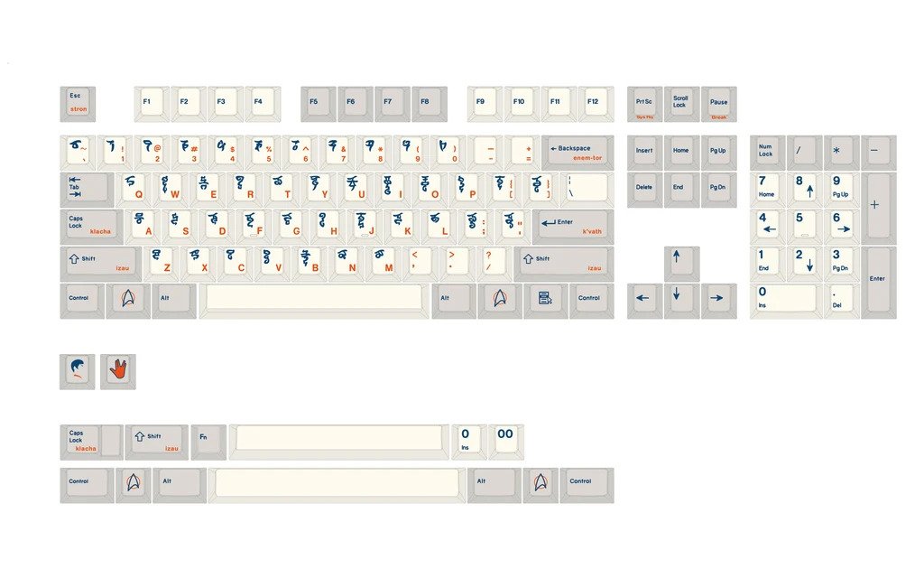 鍵帽靈感來源於《星空奇遇記》中的虛構種族—“瓦肯”,夜光版同樣采用了瓦肯文 + 英文的字符設計,使用高壓染色和激光鐳雕技術使夜光字符生動顯現。