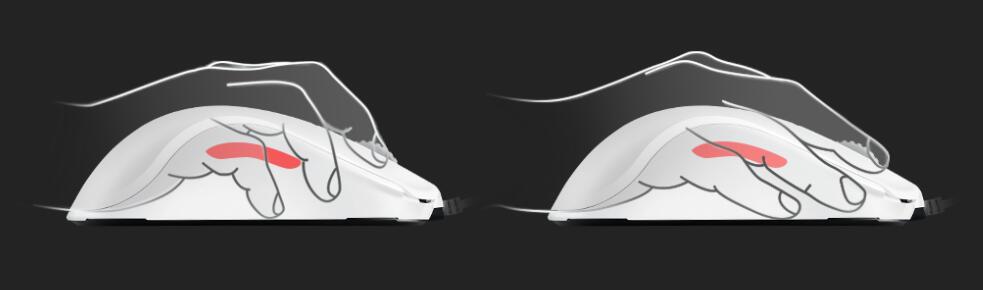 高鼠背設計讓使用者明顯的感受到掌心與滑鼠背部緊密貼合提供的更舒適握感,並且在前端兩側做了些微改變,能幫助使用者更輕鬆的抬起滑鼠。
