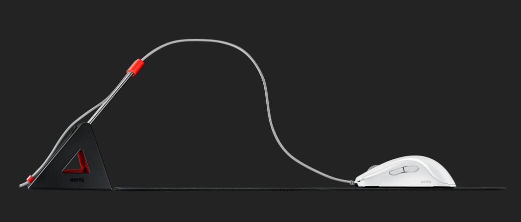 前端線頭角度拉高的設計,使滑鼠線較不易垂放在滑鼠墊上,降低線材干擾而影響操作。