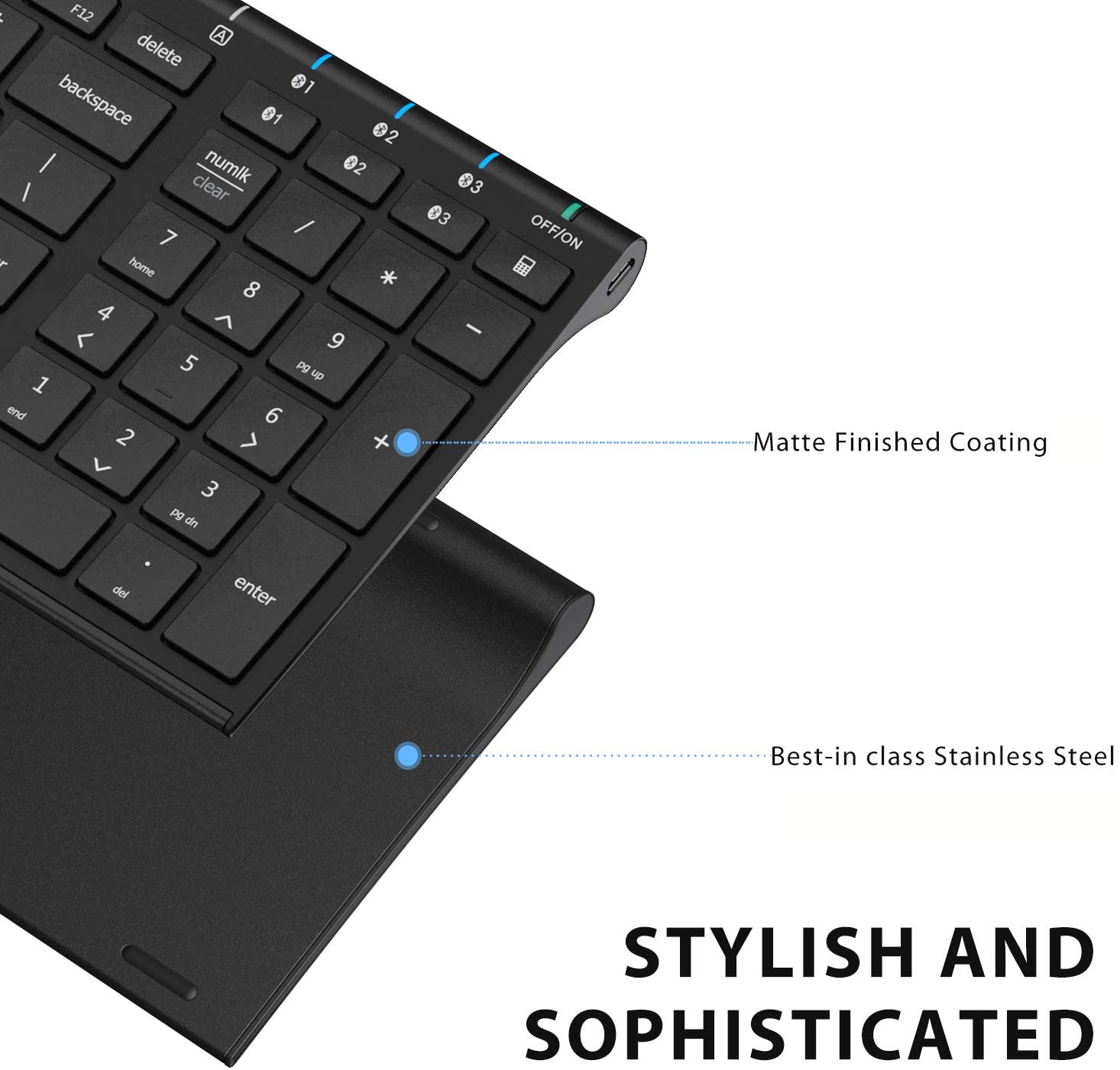 iClever藍牙鍵盤,帶數字鍵盤人體工程學設計的多設備鍵盤可充電藍牙5.1全尺寸穩定連接鍵盤