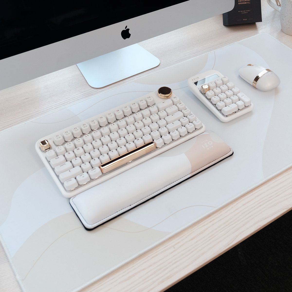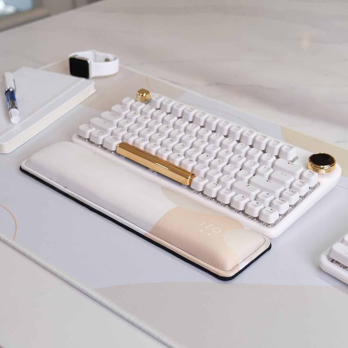 IZO手托保留了與IZO鍵盤相同的設計原則,採用平行圓形圖案,而其超細纖維表面的彩色印刷與鍵盤的色調完美匹配。 IZO 手托採用記憶海綿製成,符合人體工程學設計,可提供良好的彈性和柔軟的舒適感,適合長期使用。