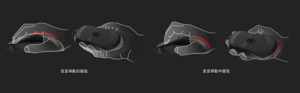 - 抓握玩家,兩側內凹的幅度,讓無名指和小指在握持以及抬鼠時更輕鬆穩定