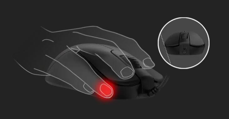 對於抓握玩家,兩側內凹的幅度,讓無名指和小指在握持以及抬鼠時更輕鬆穩定。