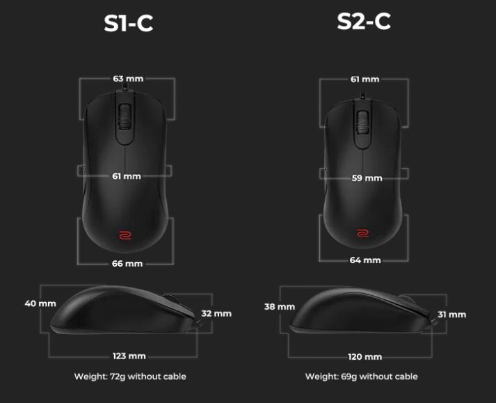 S系列在外型的設計上將整體長度縮短,讓使用者能輕易包覆滑鼠,在平面的垂直移動時,手掌邊緣與滑鼠下邊緣有足夠的運動空間。 2021年推出的C版本提供提供玩家重量減輕、傘繩線以及24段滾輪的不同選擇。