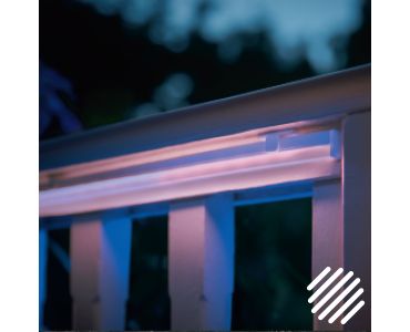 Flexible to shape and bend Easily bend and shape the Philips Hue Lightstrip Outdoor for your application. Place it into the ground to highlight your pathway, or apply it with the included clips and screws to any surface for ceiling or wall lighting; possibilities are endless. |