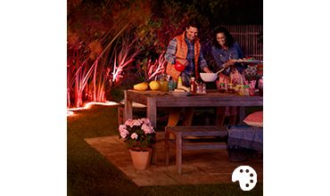 Special light for special occasions Family or friends coming over? Set your outdoor lights to match the occasion. Whether it╞s a cozy dinner on the balcony, a BBQ on the patio or party in the backyard, you can add a touch of magic to every get-together with Philips Hue. Create colorful scenes or slow-moving dynamic effects to enjoy these special moments to the fullest. |