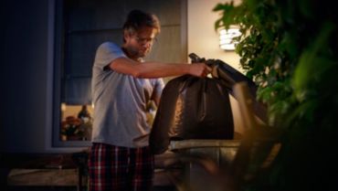 Set timers for your convenience Enjoy longer evenings outside, finish yard work or just bring the garbage outside after sunset. Have your Philips Hue lights turn on automatically by setting schedules or use sunset /sunrise routine. And of course, you can also turn off or dim your lights this way. You╞ll never again have to worry whether you've left any lights on. |