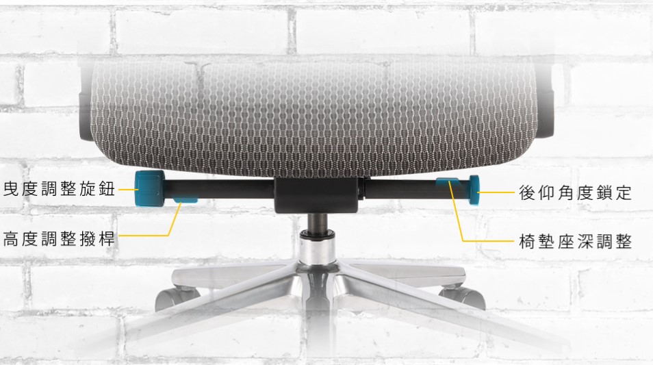 - 可調整椅座座深 : 有,前後調整滑軌椅座