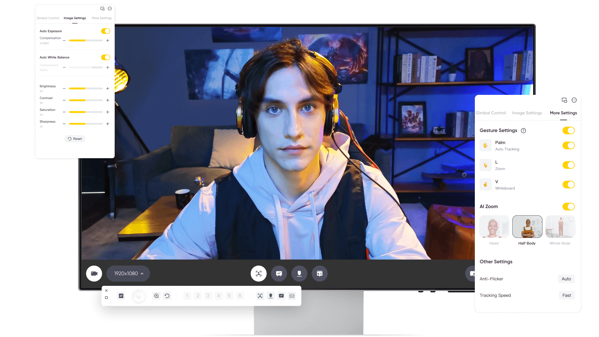 實力強大,又簡單易用。通過Link Controller桌面客戶端,可輕鬆實現畫面調整、雲台控制、AI追蹤、手勢控制等多項功能。