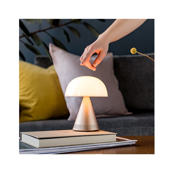 Offering up to 24h of battery life from a single charge for the lighting function, and 6h when both light and speaker are simultaneously on, Mina L Audio is the perfect companion all day and night. Mina L Audio is rechargeable using any Qi-enabled wireless charging station or with cable via its USB-C port.