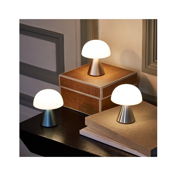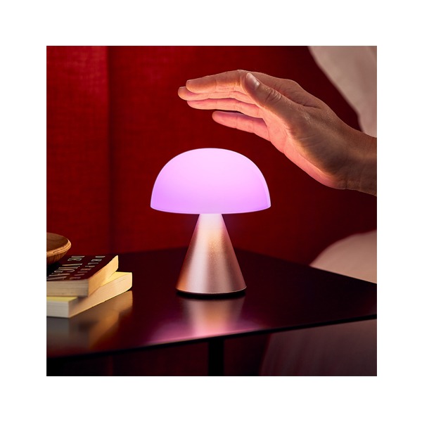 Mina M brings an impressive 9 LED light color range to your bedside, workspace, or patio. The color change and dimming function are all controlled by a press down feature on the top of the light.