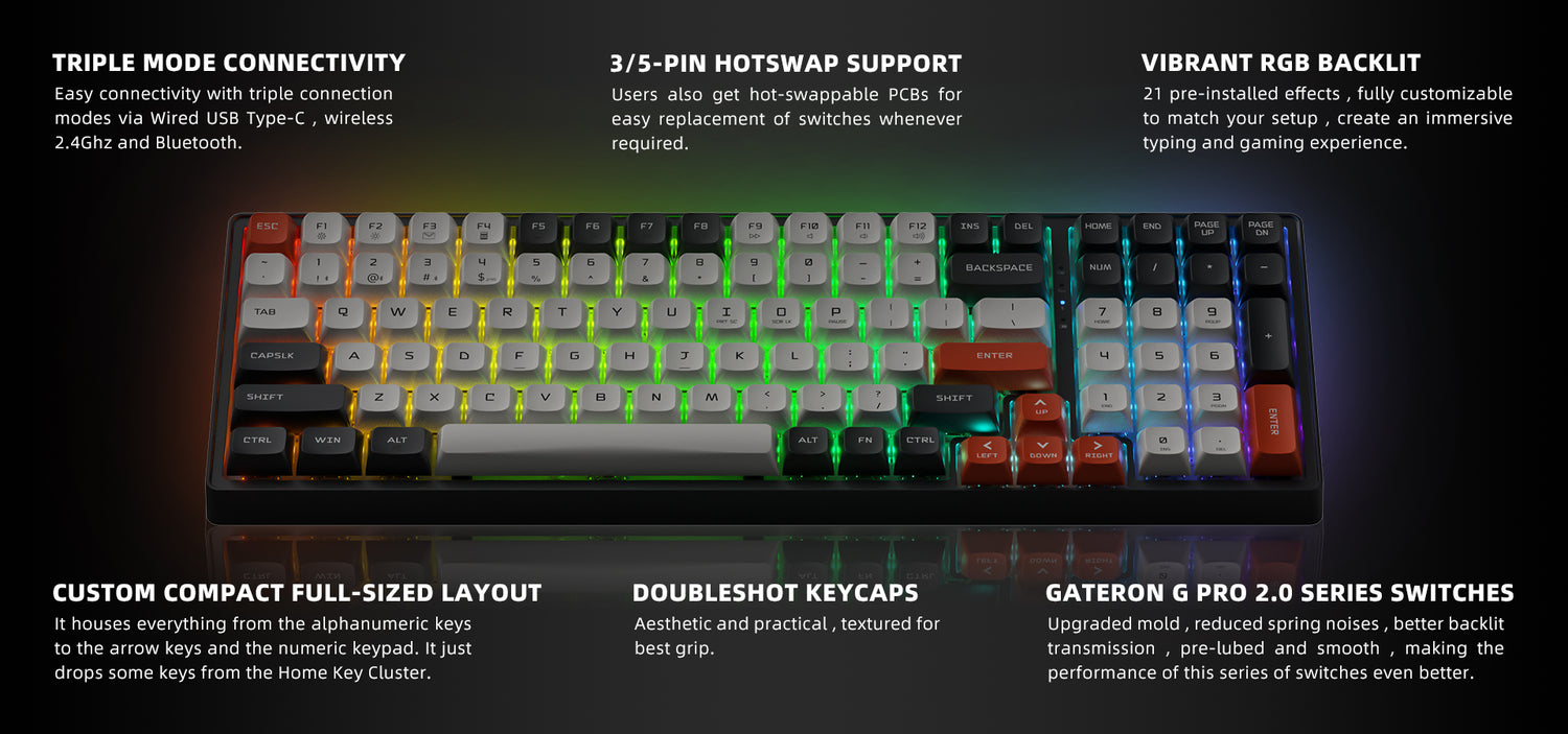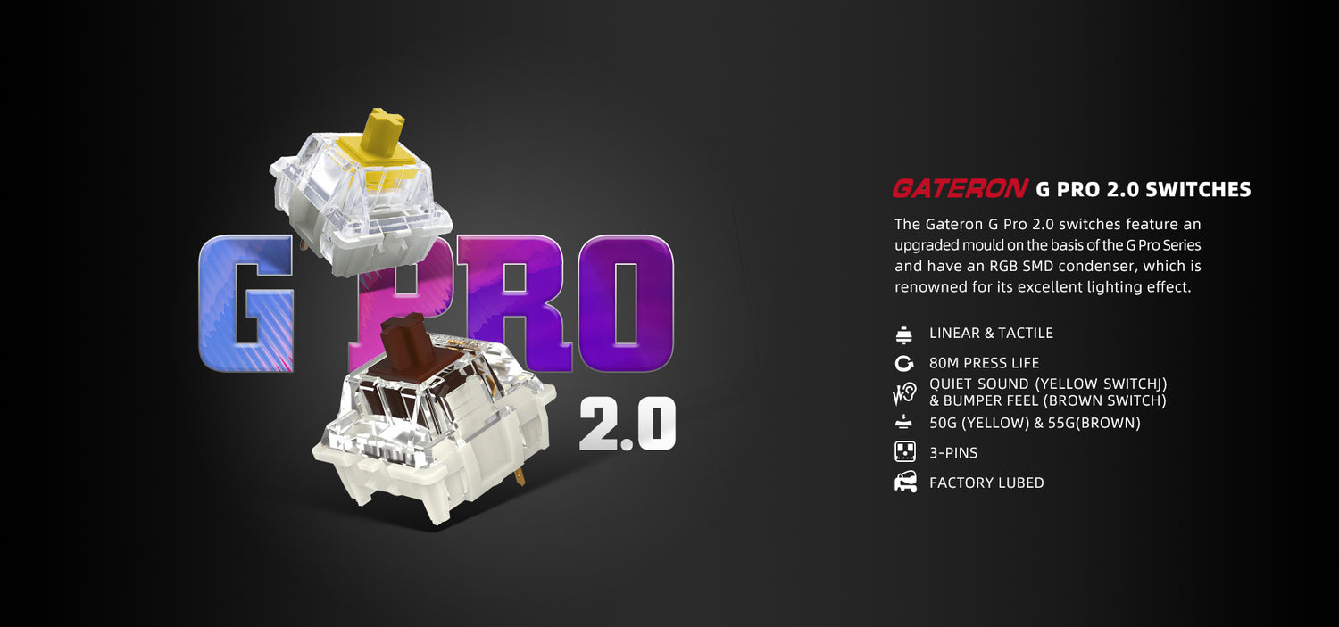 - Feature: Hot Swapping. Audio visualizer. Gateron G Pro 2.0