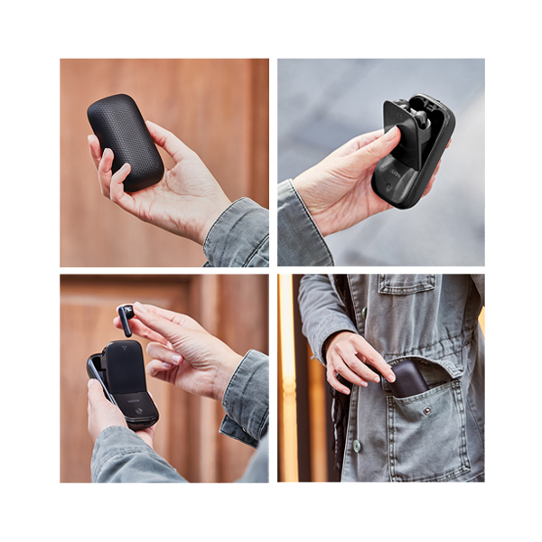 Speakerbuds is a revolutionary 2-in-1 device that combines a portable speaker with True Wireless Stereo Earbuds, wrapped in a compact synthetic leather case.