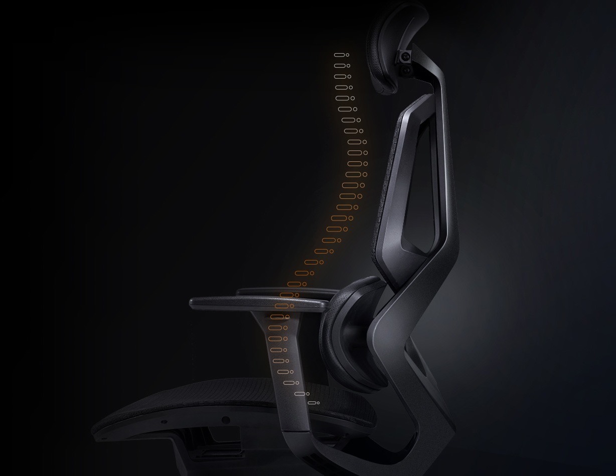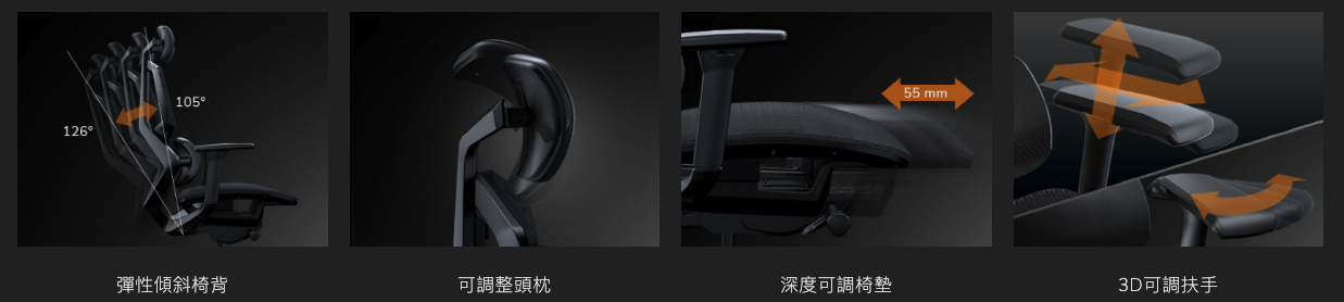 以透氣網布與PAFRP骨架形成的高支撐椅背,並可依據需求彈性調整至貼合身形,貼心照料每一處細節,使你維持健康坐姿,避免長時間姿勢不良影響遊戲體驗