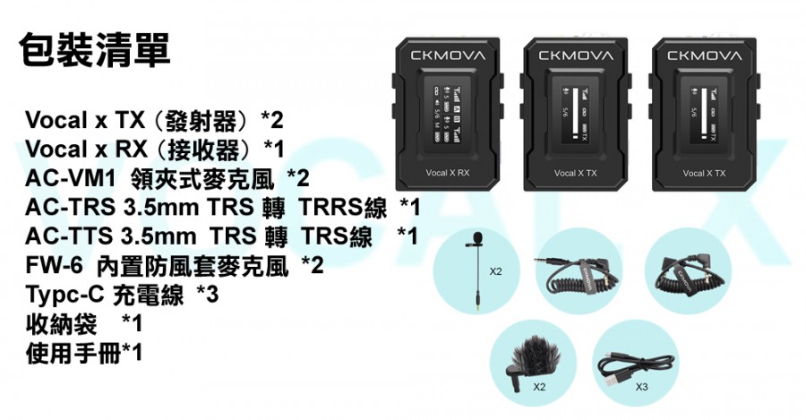 CKMOVA VOCAL X V2 一對二無線麥克風系统