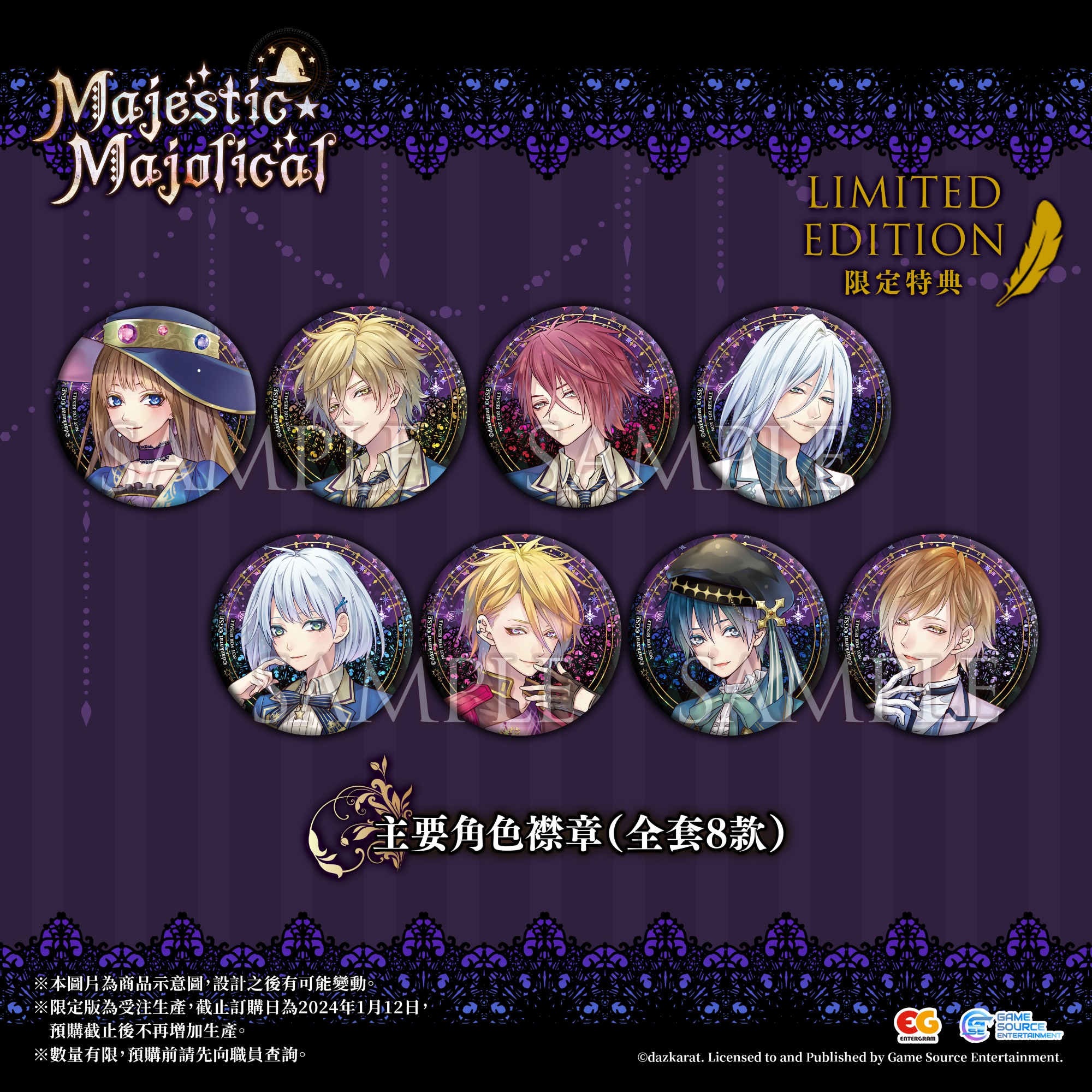《MAJESTIC☆MAJOLICAL》主要人物襟章(全套8款)