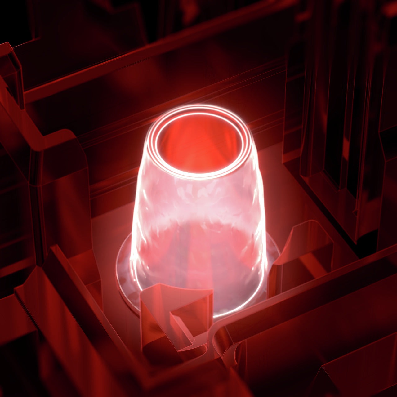 它採用行業領先的金觸點,使電氣觸點外殼具有自清潔功能,並提供永久防腐蝕性能和出色的電力傳輸,從而保證 RGB 軸體(不包括 RGB 靜音軸體)可運行長達 1 億次。