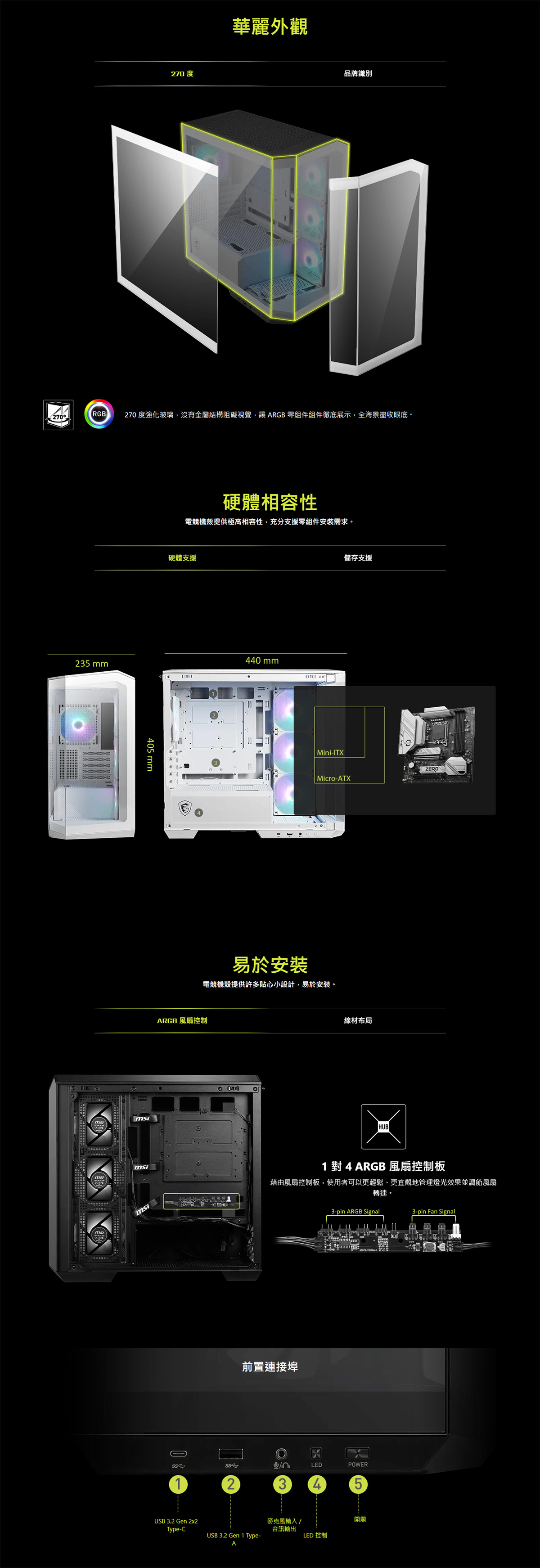 - 內建1-4個ARGB-PWM風扇和控制板,展現生動地燈效。